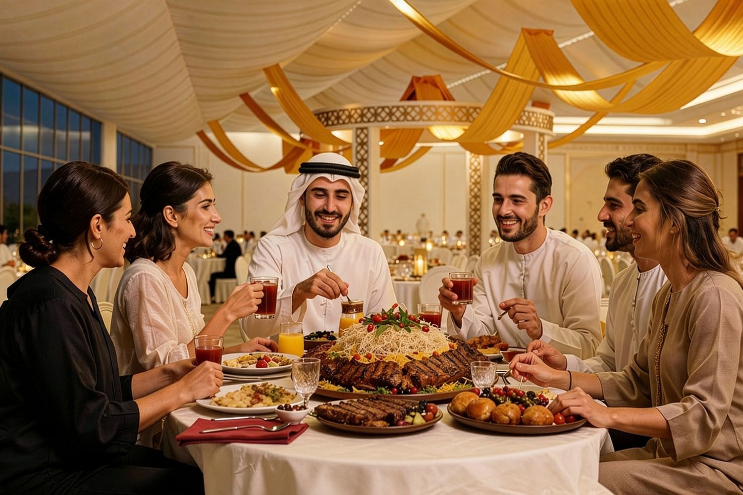 AED 175 per adult with live stations & Ramadan Drinks